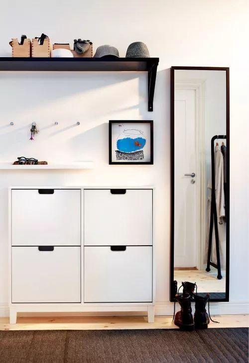 家里平底鞋、低跟鞋居多的話,可以參考這種鞋柜。不需要太多空間,收納能力卻很強。而且,可以看到,它所需要占用的空間是很小的,在比較窄的玄關空間中,一點都不會影響日常的行走通過。