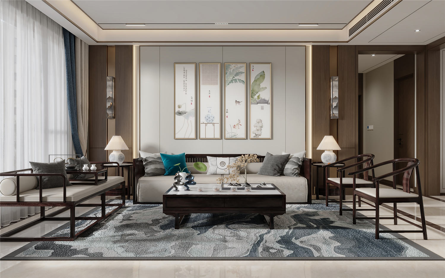 大面積深褐色的木質(zhì)地板搭配上清新掛畫,讓中式風所特有的典雅韻味得到很好的表達。
