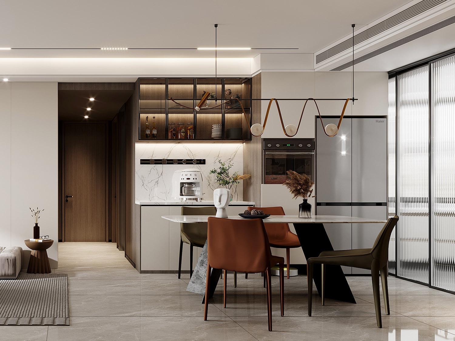 × 餐廳如果按常規的酒柜或餐邊柜設計,會導致動線擁擠。