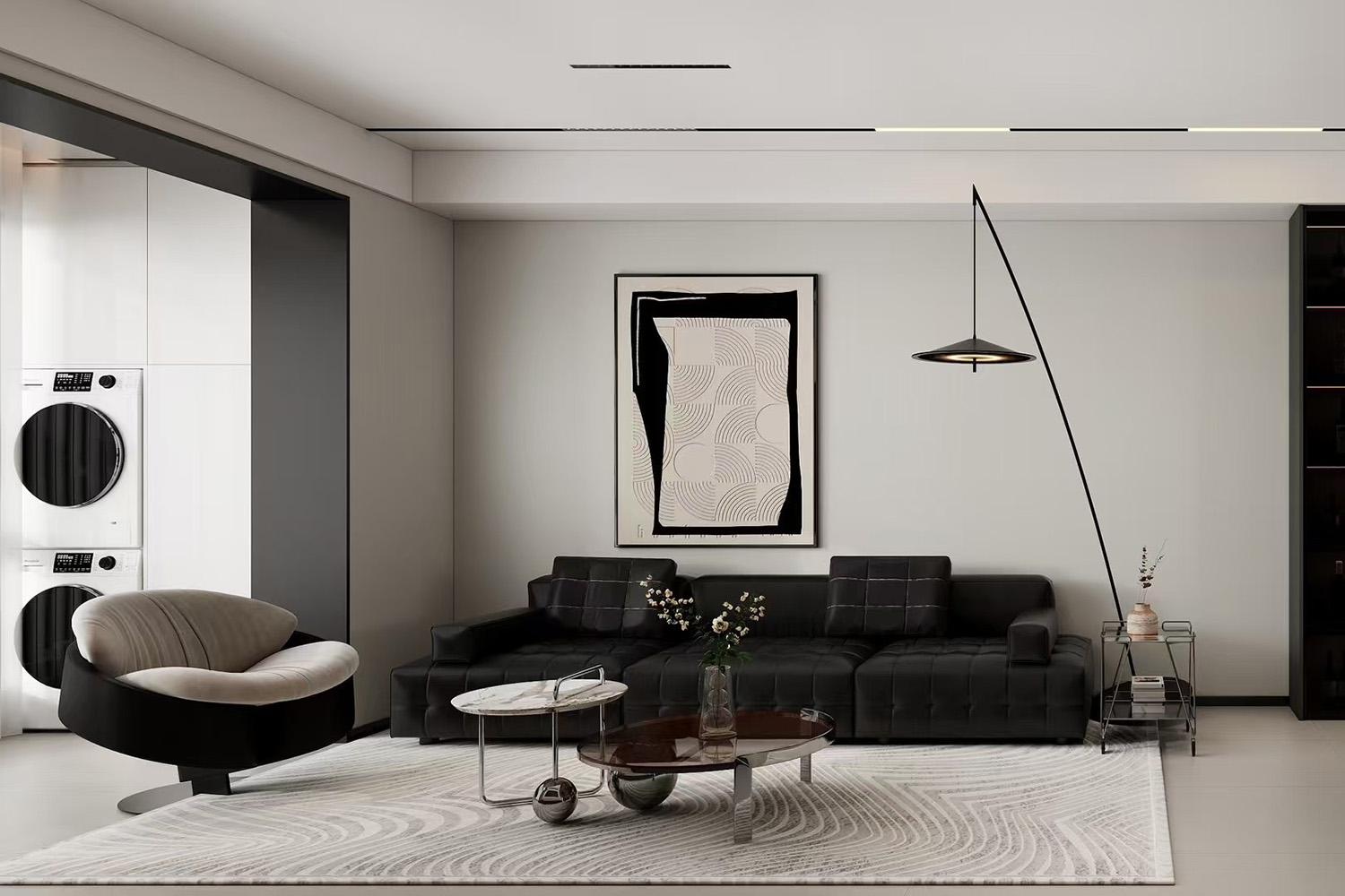 案例簡介:本案例是一個坐落于喧囂都市的大戶型別墅,業主希望設計師能夠幫助自己打造出一個高品質的格調家居,設計師結合業主的審美與實際情況為其打造了一個集高雅顏值與實用相融合的現代輕奢住宅,借助各種高品質的材料來提升空間質感,同時借助線條的律動來增添空間的時尚個性氛圍。