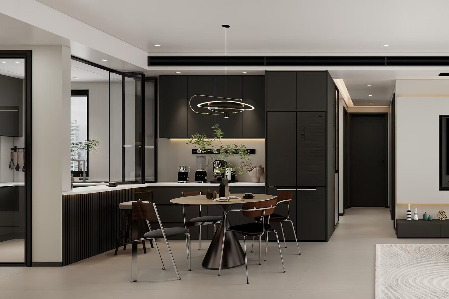 3 廚房雙向聯動門,可開放可封閉,防油煙也可拓展空間視覺。